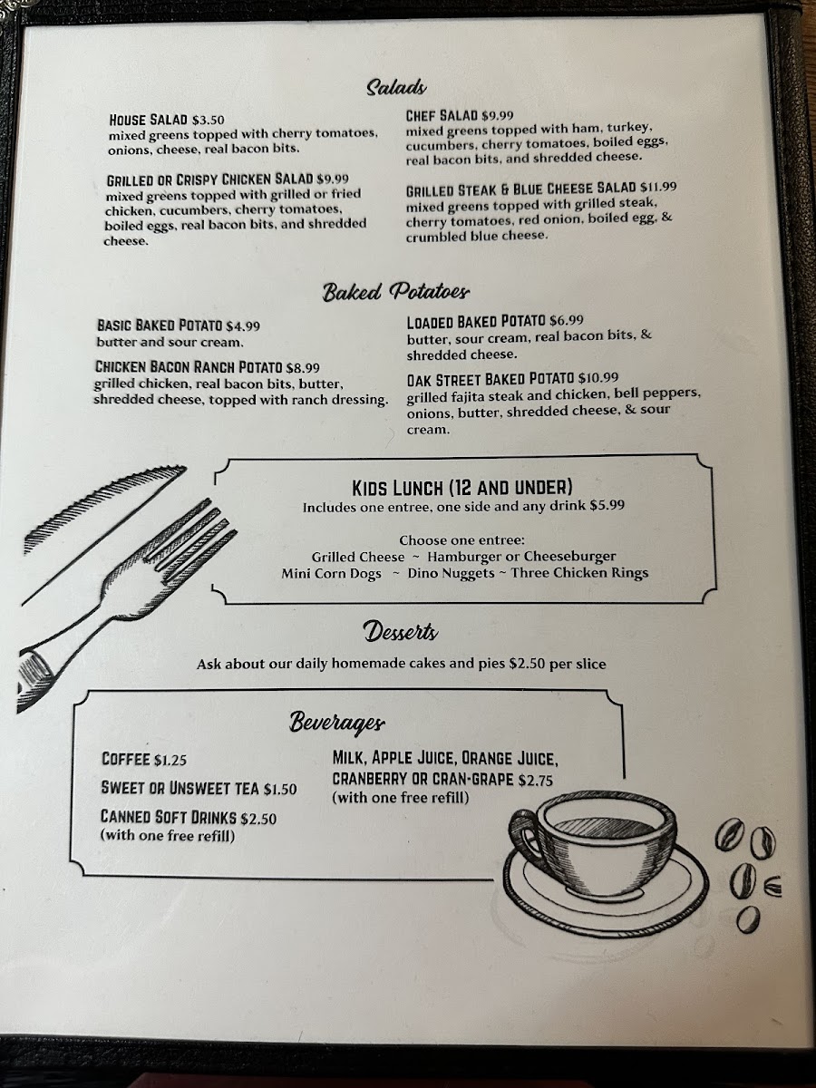 As you step inside, you’re greeted by a cozy atmosphere, perfect for families, friends, or solo diners looking for a comforting meal. The décor has a homey feel, with rustic accents and a layout that encourages relaxed conversations. The staff at Oak Street Cafe is known for their warmth and attentiveness, ensuring that every visit feels like a welcome reunion.
