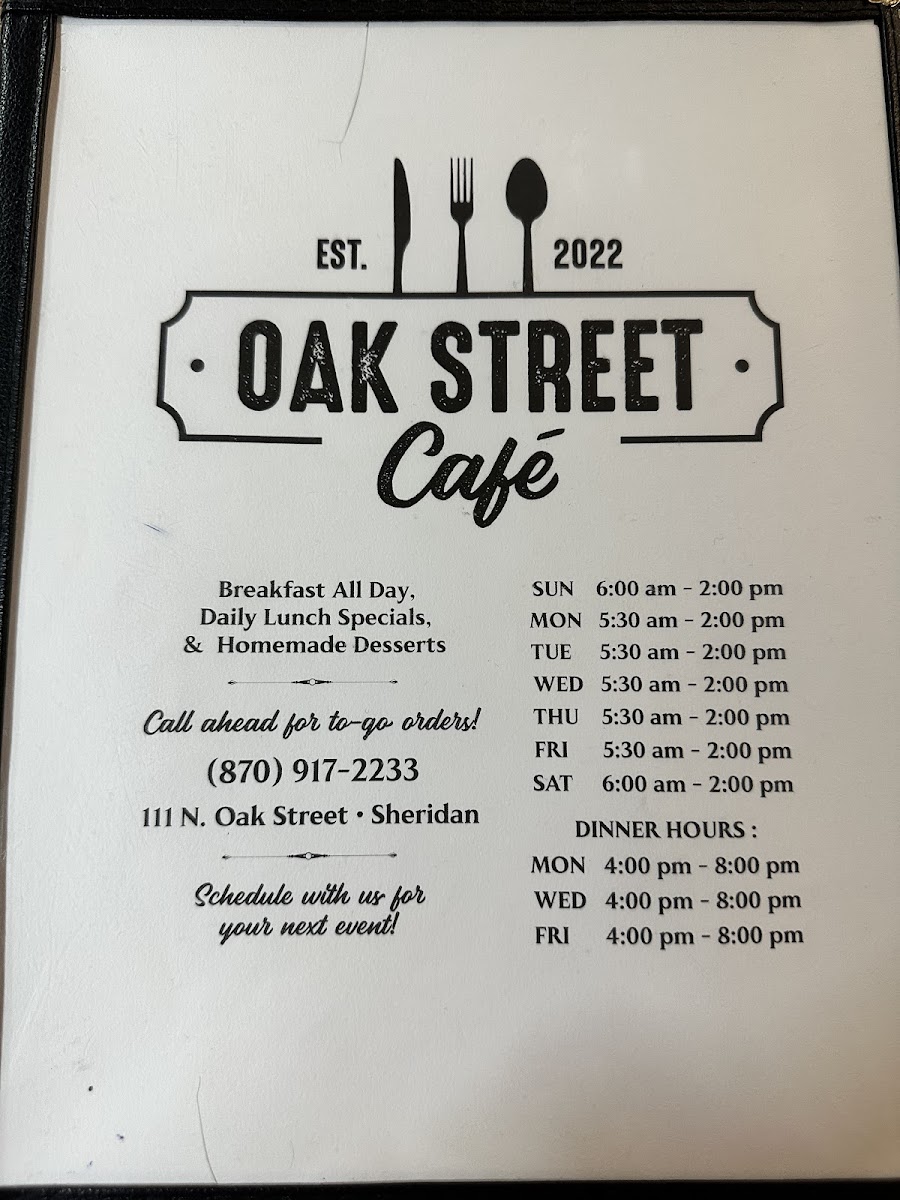 Welcome to Oak Street Cafe, a charming culinary hideaway nestled in the heart of Sheridan, Arkansas. This café is more than just a place to grab a quick bite; it’s a warm, inviting space where the aroma of home-cooked meals fills the air and friendly chatter creates a sense of community. Whether you’re a local or just passing through, Oak Street Cafe offers a delightful dining experience that you won't want to miss.