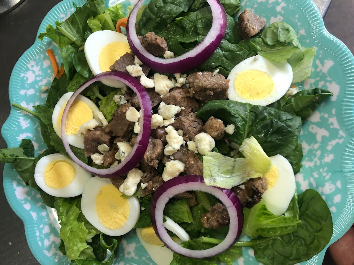 The menu boasts a variety of delicious options, with offerings that cater to every taste. A standout dish is the Grilled Steak & Blue Cheese Crumble Salad, where mixed greens are artfully topped with succulent grilled steak, juicy cherry tomatoes, and a sprinkle of blue cheese that creates a perfect balance of flavors for just $13.65. For those craving something heartier, the popular Chef Salad at $11.55 combines fresh mixed greens with an array of toppings, including ham, turkey, and crispy bacon bits, making it a satisfying option for lunch or dinner.
